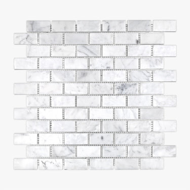 White Carrara Honed 1x2 Brick Marble Mosaic