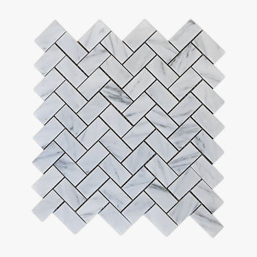 Order a Sample Get a sample of White Carrara Honed 3/4x2 Herringbone Marble Mosaic for only $5.00.