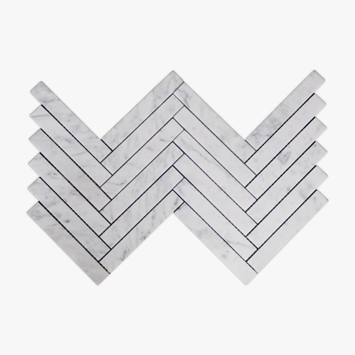 White Carrara Honed 5/8x6 Herringbone Marble Mosaic