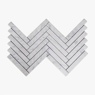 Get a sample of White Carrara Honed 5/8x6 Herringbone Marble Mosaic for only $5.00.